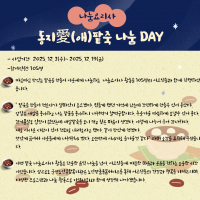 | 3533 | ![]() | [2025.12.19(±Ý)] 2025³â µ¿Áþ³¯ ±â³ä ¡¸ÆÏ! Çϰí ÅÍÁö´Â Çູ µ¿ÁöÀÜÄ¡¡¹ : ¼Ò¿ø ±Û ¾²°í ³ª¹« ²Ù¹Ì±â | 2025-12-24 | 50 |