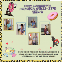 3437 | ![]() | 2025. 09. 30.(È)³ëÀθÂÃãµ¹º½¼ºñ½ºÅ©¸®½ºÇÇÅ©¸²µµ³Ó 9¿ù(22~23Â÷) ´ÞÄÞÇÑ ³ª´®Áö¿ø | 2025-10-01 | 60 |