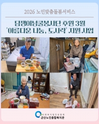 | 3609 | ![]() | [2026. 3. 18.] 2026³ëÀθÂÃãµ¹º½¼ºñ½º ´ãÀïÀ̳ÕÄðºÀ»ç´Ü ÈÄ¿ø 3¿ù µµ½Ã¶ô Áö¿ø»ç¾÷ | 2026-04-07 | 23 |