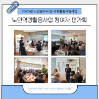 3435 | ![]() | [2025.09.30(È)] ³ëÀÎÀÏÀÚ¸® ¹× »çȸȰµ¿Áö¿ø»ç¾÷ ¿ª·®È°¿ë Âü¿©ÀÚ Æò°¡È¸ | 2025-09-30 | 49 |