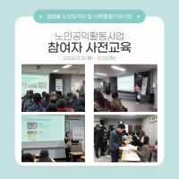 | 3548 | ![]() | [2026.01.15~01.22] ³ëÀΰøÀÍȰµ¿»ç¾÷ Âü¿©ÀÚ »çÀü±³À° | 2026-01-22 | 75 |