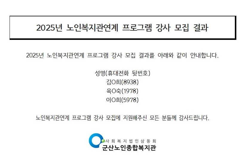 2025³â ³ëÀκ¹Áö°ü¿¬°è ÇÁ·Î±×·¥ °­»ç ¸ðÁý °á°ú