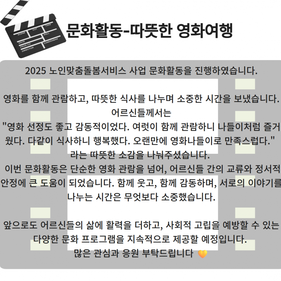 [2025.9.16(È­)] ³ëÀθÂÃãµ¹º½¼­ºñ½º ¹®È­È°µ¿-µû¶æÇÑ ¿µÈ­¿©Çà
