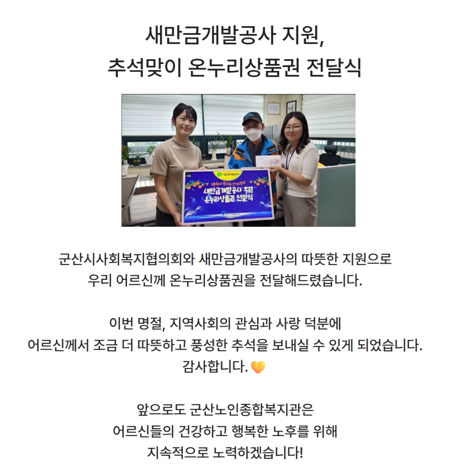 [2025.9.25(¸ñ)] »õ¸¸±Ý°³¹ß°ø»ç Áö¿ø, Ãß¼®¸ÂÀÌ ¿Â´©¸®»óǰ±Ç Àü´Þ½Ä