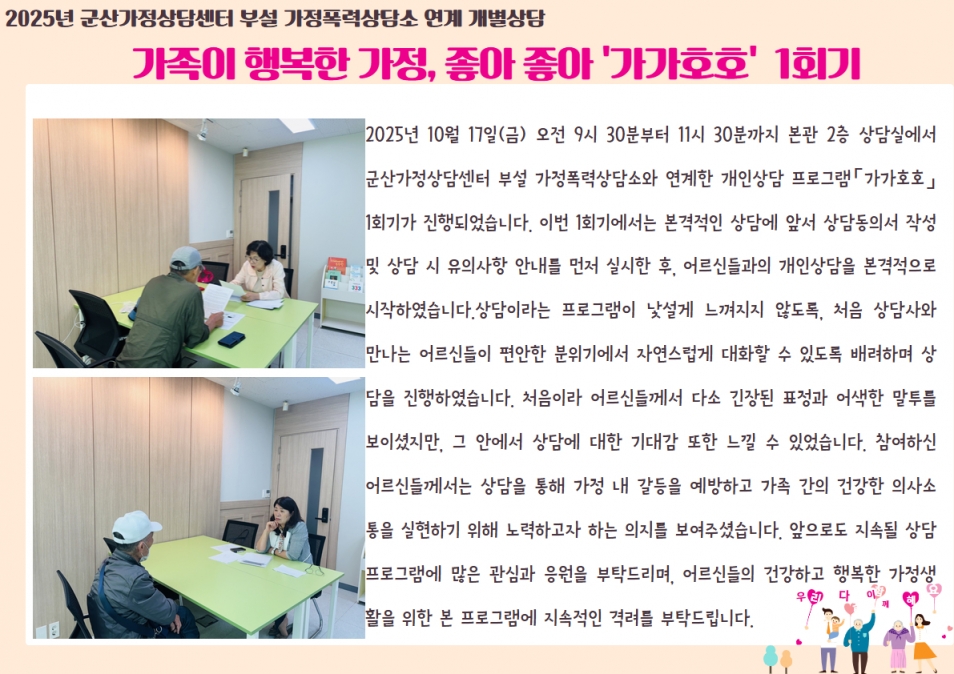 [2025.10.17.(±Ý)] 2025³â ±º»ê°¡Á¤»ó´ã¼¾ÅÍ ºÎ¼³ °¡Á¤Æø·Â»ó´ã¼Ò ¿¬°è °³º°»ó´ã ÇÁ·Î±×·¥ °¡°¡È£È£ 1ȸ±â